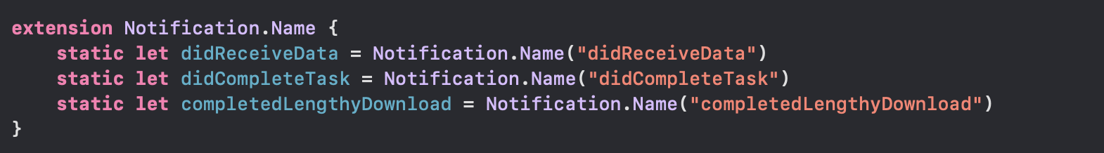static let didCompleteTask = Notification.Name("didCompleteTask")