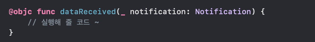 notification이 오면 실행해주는 함수는 target-action 패턴과 같은 형식으로 진행된다.